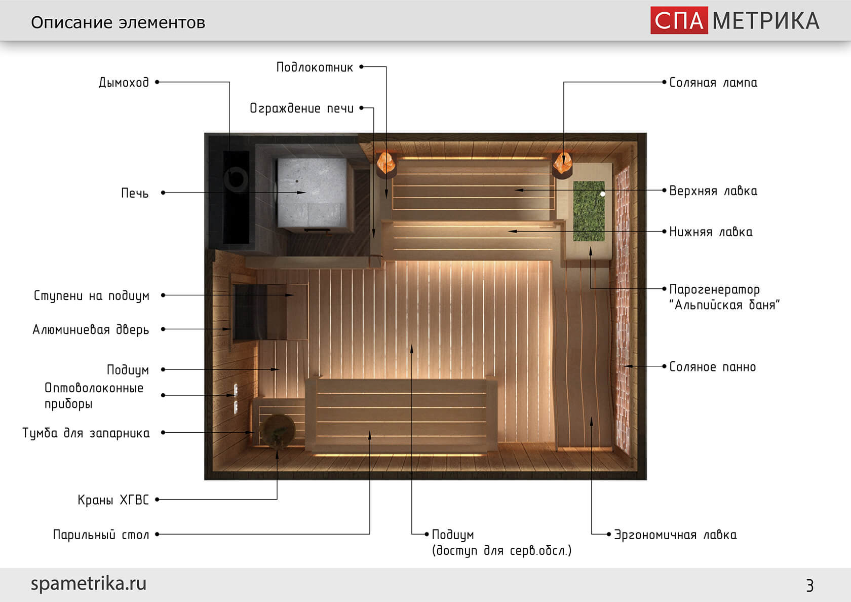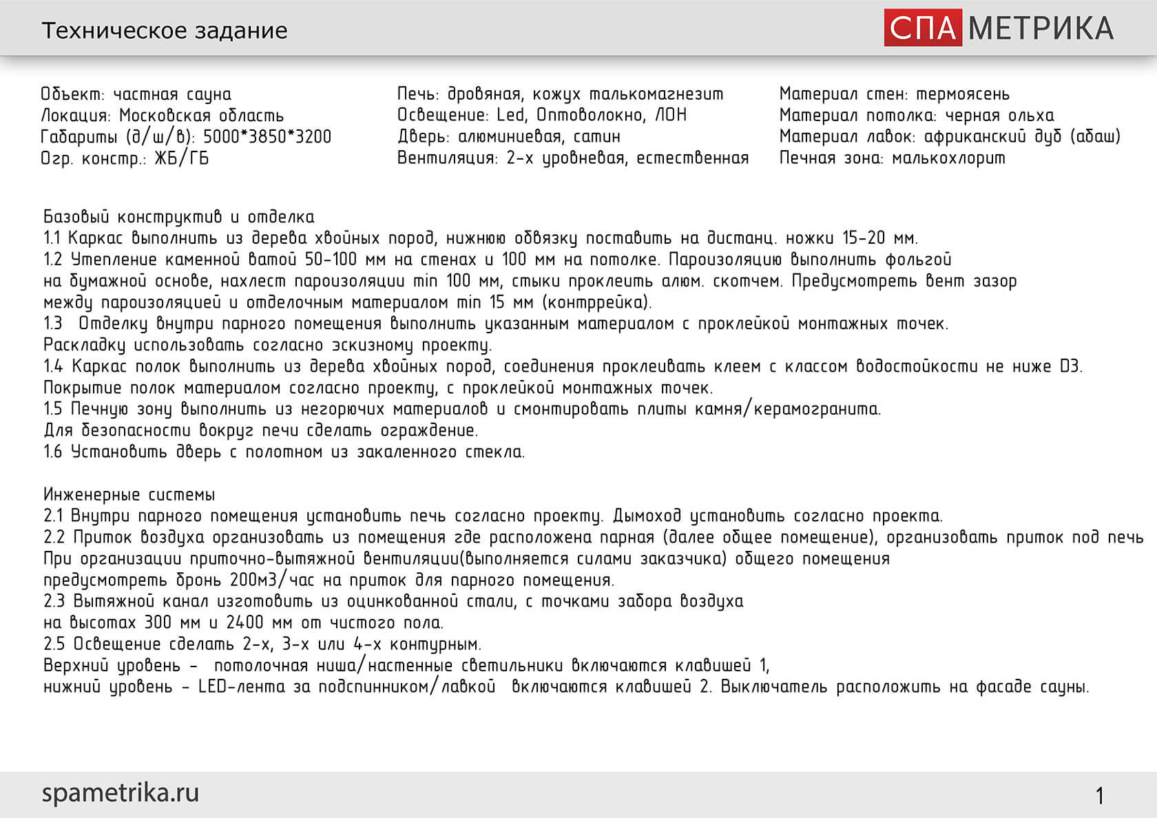 - Разработка дизайн-проекта парной, расчет/монтаж оборудования для режима ИК-процедуры, работа с заказчиком по дизайну, подготовительные работы в помещении;