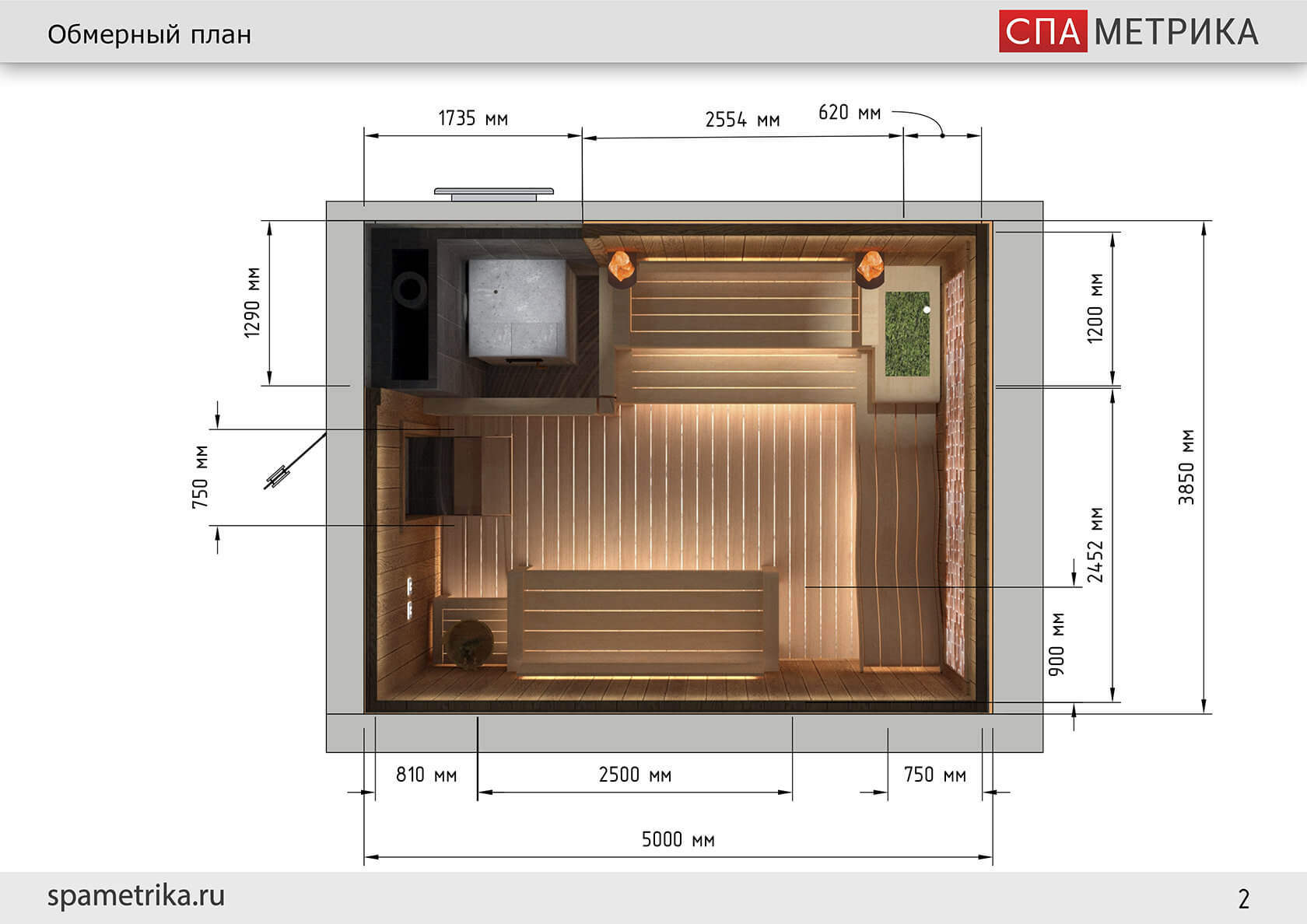 - Разработка дизайн-проекта парной, работа с заказчиком, подготовительные работы в помещении;
