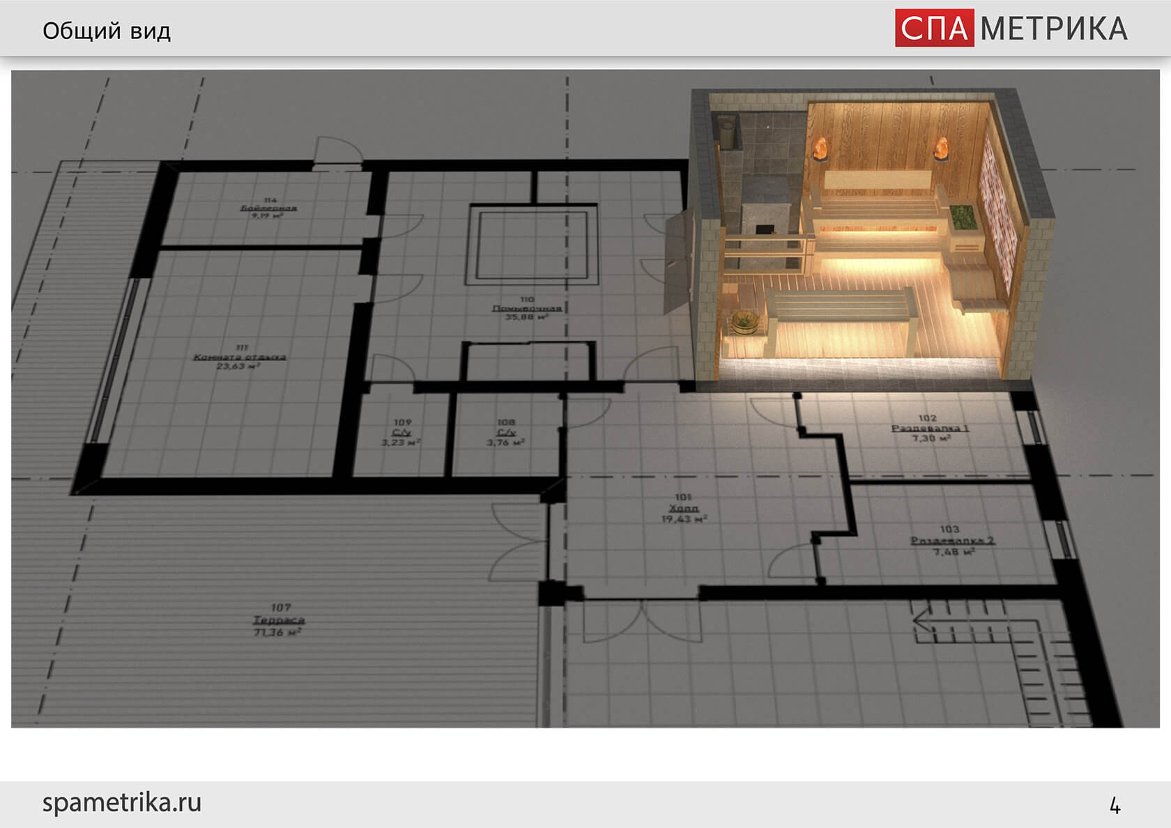 - Разработка дизайн-проекта парной, совместная работа с ведущим архитектором, подготовительные работы в помещении;