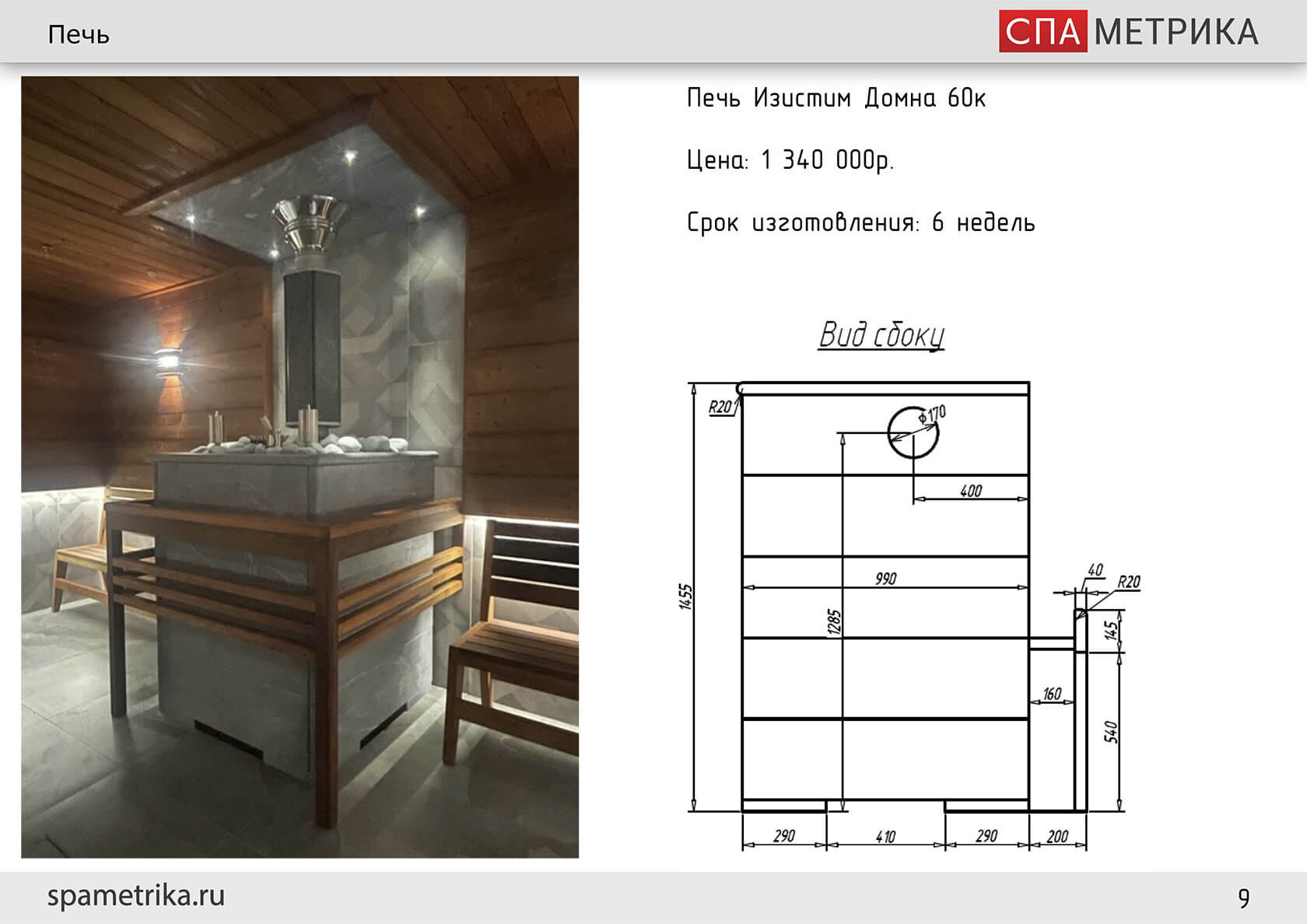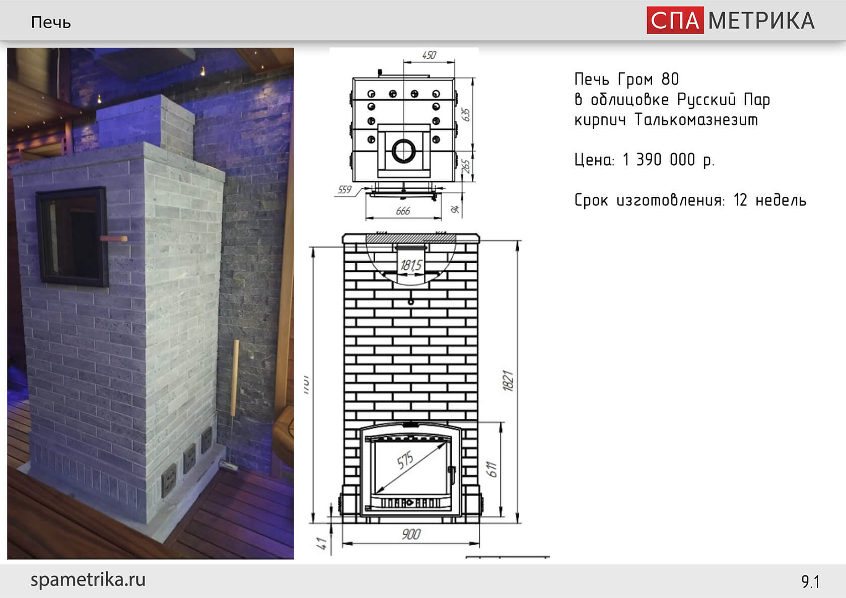 - Печь — дровяная Изистим (талькокварцит);